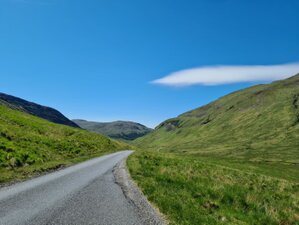 Von Calligarry geht es morgens mit der Fähre zurück aufs Festland und weiter in südöstliche Richtung. Nach einer gemütlichen Fahrt passieren wir Fort William. Von hier startet der „Jacobite Steam Train“, besser bekannt als der Hogwarts Express aus den Harry Potter Filmen. Allerdings ist der Betrieb zurzeit wegen Sicherheitsmängeln ausgesetzt. Weiter in Richtung Süden durchfahren wir einen der schönsten und gleichzeitig der tragischsten Orte Schottlands: Das in jüngster Zeit durch den Bond Film „Sky Fall“ bekannte Tal bei Glen Coe. Hier trägt die phantastische Landschaft für immer die Erinnerung an eines der grausamsten Kapitel der Clan-Kriege, das Massaker von 1692, in sich. Unsere Tour führt uns weiter über Tarbet nach Dumberton, vorbei an einigen Seen und oft am Wasser entlang. Hier finden wir abends unser schönes kleines Hotel Queen oft he Loch und leckeres schottisches Essen vor.